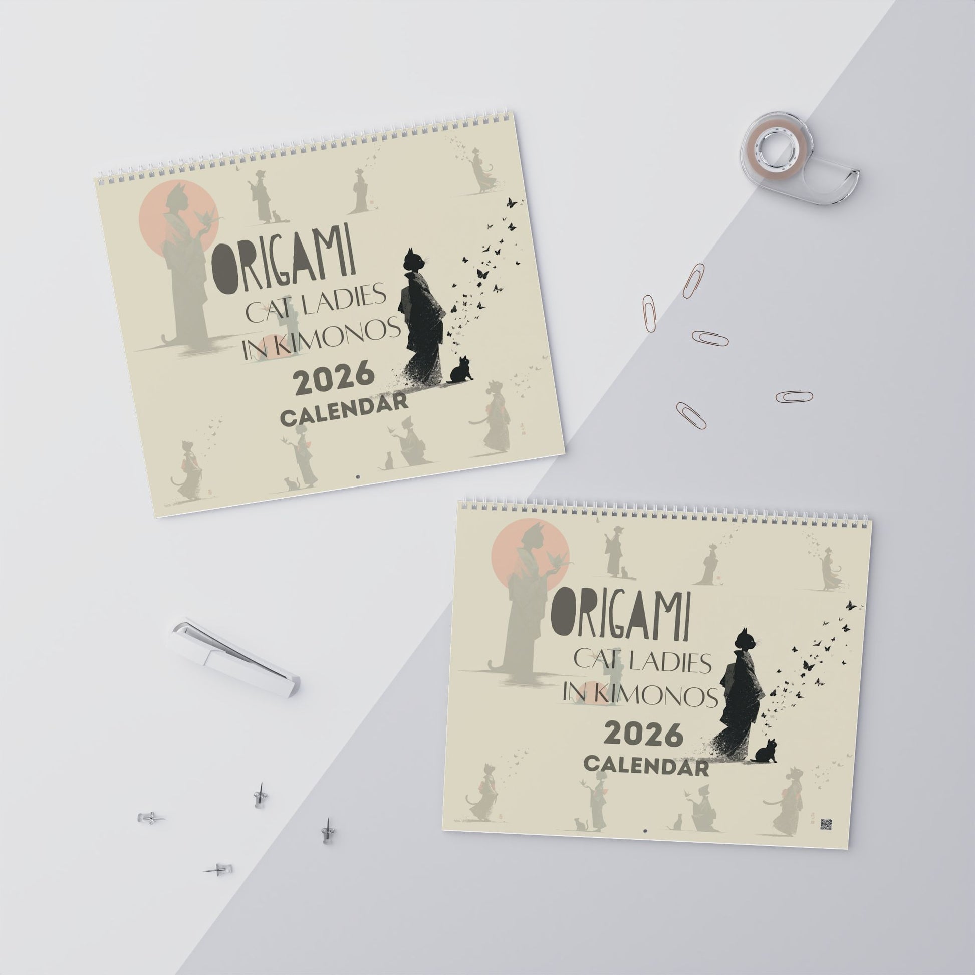 Get organized and add a touch of whimsical charm to your space with the Origami Cat Ladies in Kimonos 2026 Calendar. Perfect for cat lovers and admirers of Japanese culture, this calendar combines playful elegance with refined artistry. Each month showcases beautifully designed kimono-clad cats inspired by the grace and precision of origami—creating a serene, uplifting atmosphere in any home or office.