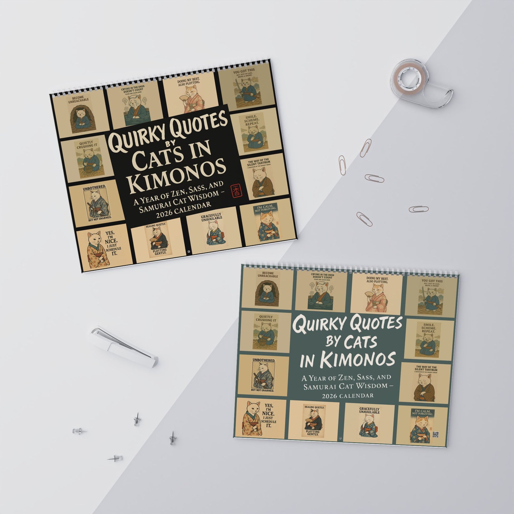 Stay organized and entertained all year long with this charming Quirky Quotes by Cats in Kimonos Calendar 2026. Each month features witty cat quotes paired with delightful illustrations of kimono-clad cats—perfect for anyone who loves humor, art, and feline flair. A fun and unique gift for birthdays, holidays, or any special occasion.